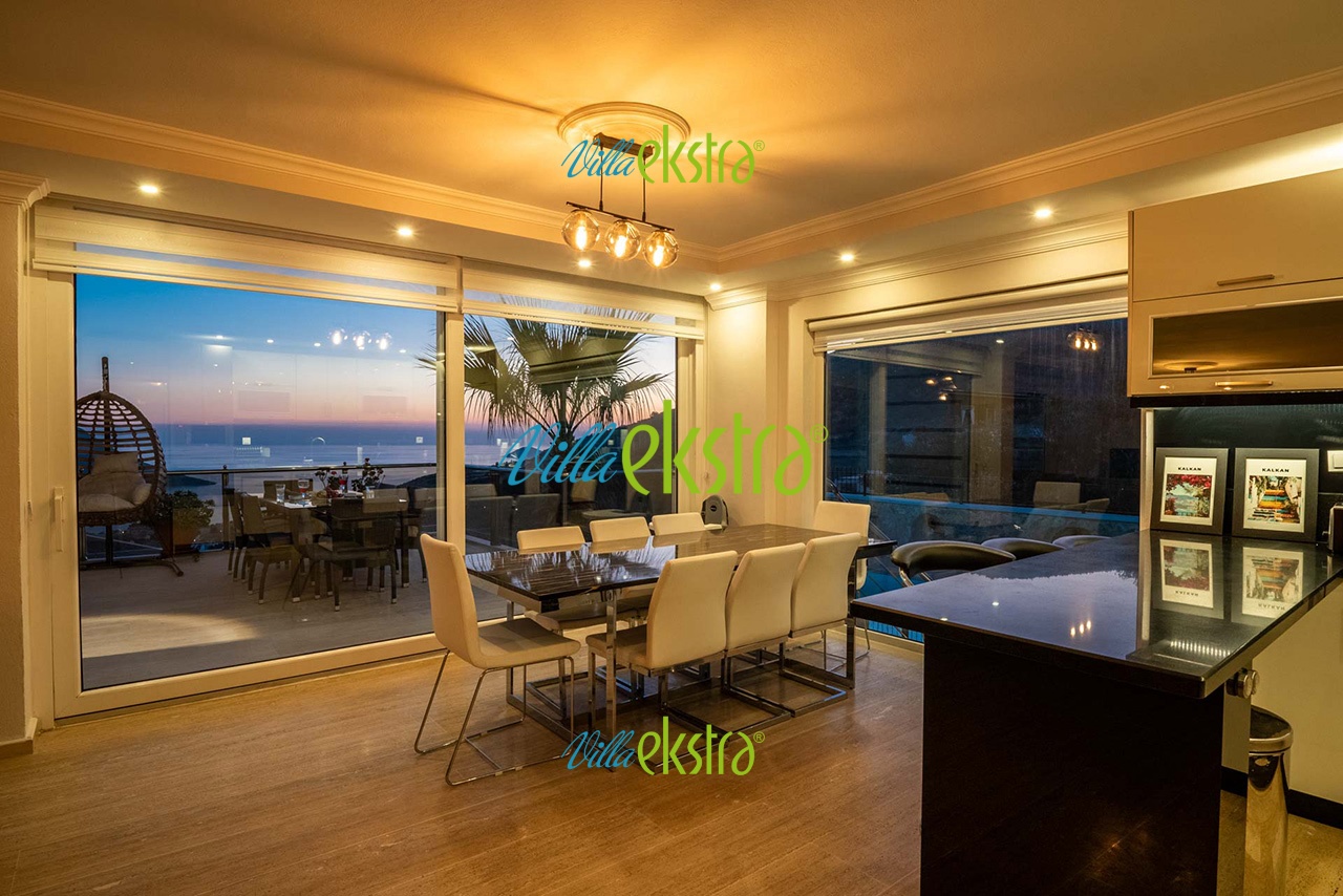 Konforlu oturma grubu, klima, orta sehpa, televizyon, uydu alıcı, yemek masası, sandalyeler, havuz terasına çıkış bulunmaktadır.